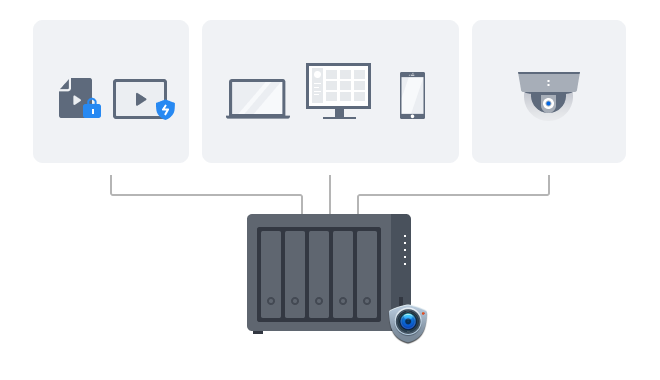 Proteger sua empresa nunca foi tão fácil, com gerenciamento centralizado, suporte para mais de 8.700 modelos de câmeras IP e monitoramento e reprodução remotos. O sistema de gerenciamento de vídeo escalável da Synology oferece todas as ferramentas necessárias para monitoramento, investigação, gerenciamento e backup ao vivo.