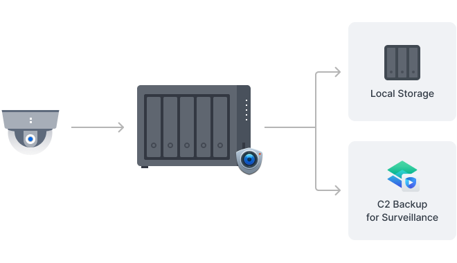 Proteja suas imagens de vigilância com um backup em nuvem robusto que suporta criptografia de ponta a ponta. Nossa solução de backup de vigilância em nuvem protege suas gravações do Surveillance Station, permitindo que você acesse, visualize, compartilhe e baixe as imagens por meio de um portal web conveniente. Garanta que seus dados permaneçam disponíveis mesmo que seu sistema local seja comprometido.