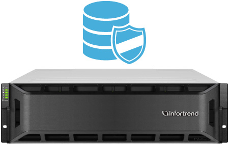 O EonStor GS oferece diversos mecanismos de proteção de dados para garantir a segurança dos dados. Primeiro, a tecnologia RAID exclusiva da Infortrend garante que seus dados permaneçam intactos mesmo em caso de falha de disco.