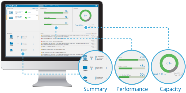 Com sua interface intuitiva, os administradores de TI podem gerenciar facilmente um cluster e vários dispositivos, monitorar o desempenho e o uso da capacidade e concluir as configurações do sistema, tudo a partir de uma interface centralizada.
