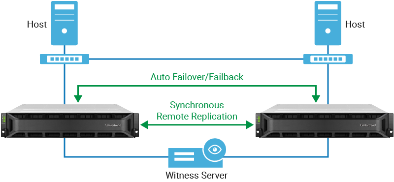 Com replicação remota síncrona e failover automático, esta solução garante que cópias idênticas e completas dos dados sejam armazenadas em ambos os dispositivos de armazenamento e evita o tempo de inatividade do serviço devido a eventos planejados ou inesperados.