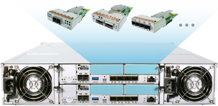 Como existe uma ampla gama de aplicações corporativas, a interface de comunicação necessária para cada aplicação pode ser diferente. A Infortrend oferece interfaces de comunicação avançadas em ambientes SAN, incluindo 16 Gb/s FC, 32 Gb/s FC, 1 Gb/s iSCSI, 10 Gb/s iSCSI e 12 Gb/s SAS, para garantir total compatibilidade com todas as aplicações. Além disso, portas de 1 GbE, 10 GbE, 25 GbE, 100 GbE e 200 GbE também são oferecidas em ambientes de rede para proporcionar compartilhamento e transferência de dados rápidos e confiáveis.