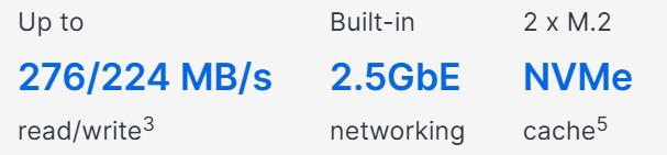 Porta 2,5GbE integrada e mais de 276/224 MB/s de leitura/gravação sequencial