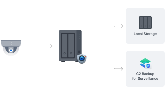 Proteja suas imagens de vigilância com um backup em nuvem robusto que suporta criptografia de ponta a ponta. Nossa solução de backup de vigilância em nuvem protege suas gravações do Surveillance Station, permitindo que você acesse, visualize, compartilhe e baixe as imagens por meio de um portal web conveniente. Garanta que seus dados permaneçam disponíveis mesmo que seu sistema local seja comprometido.