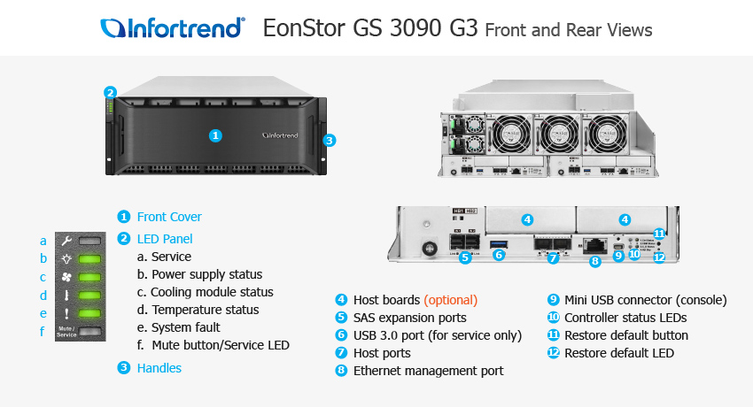 - SSD U.2 NVMe de 2,5" (para modelos de cache SSD U.2; deve ser adquirido da Infortrend)